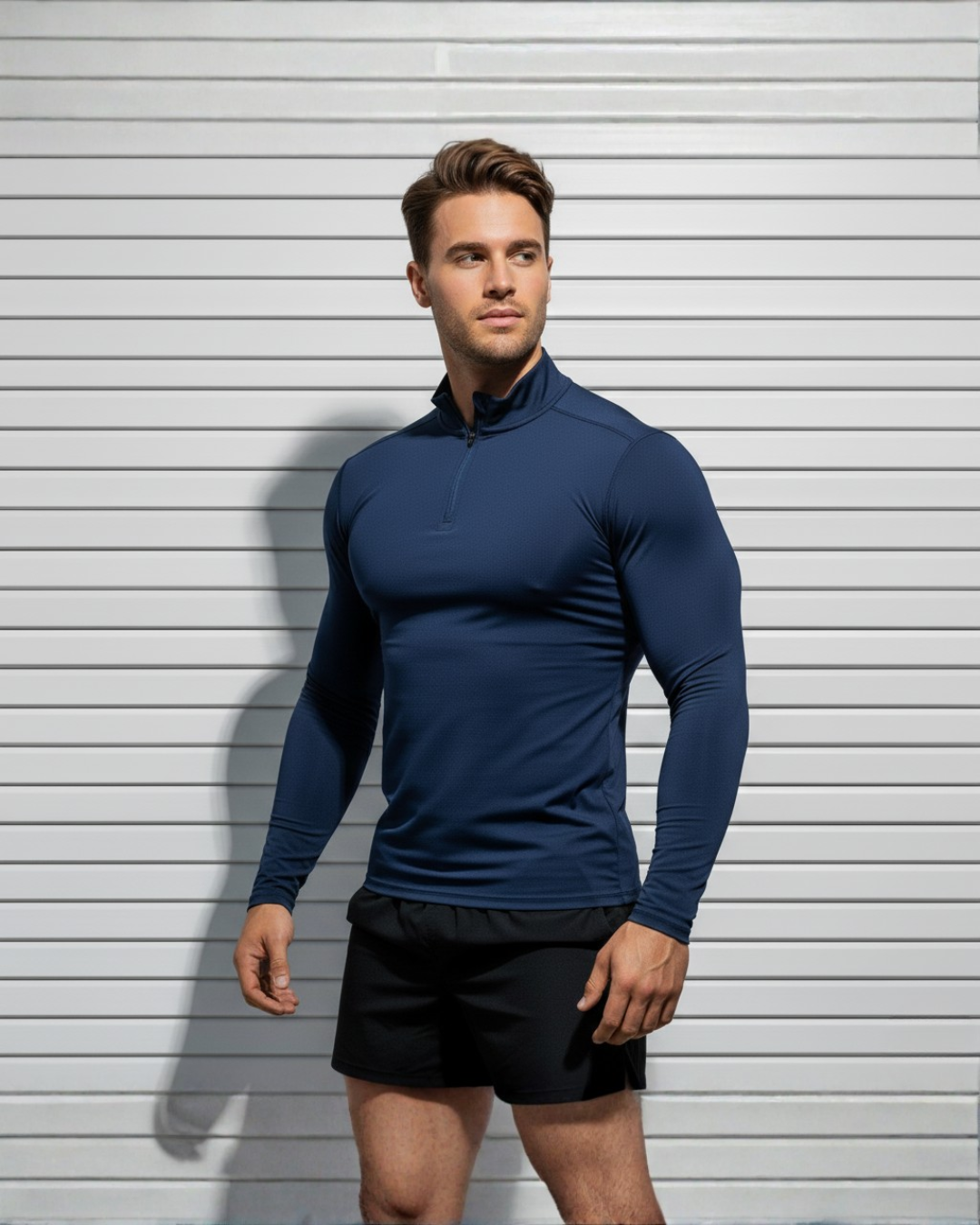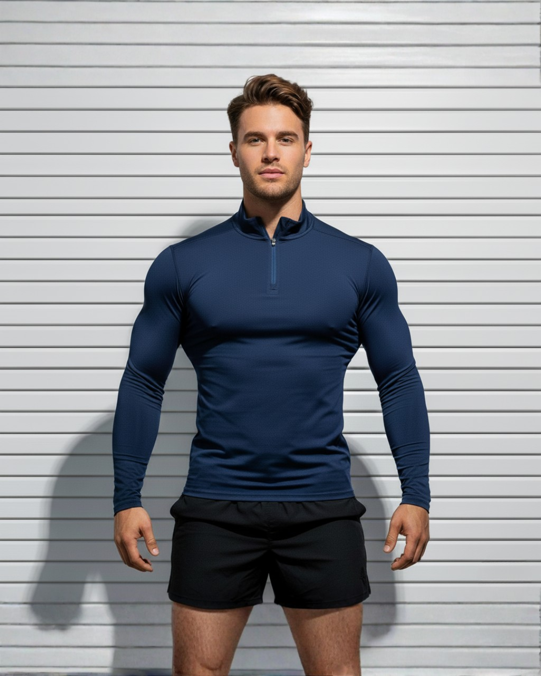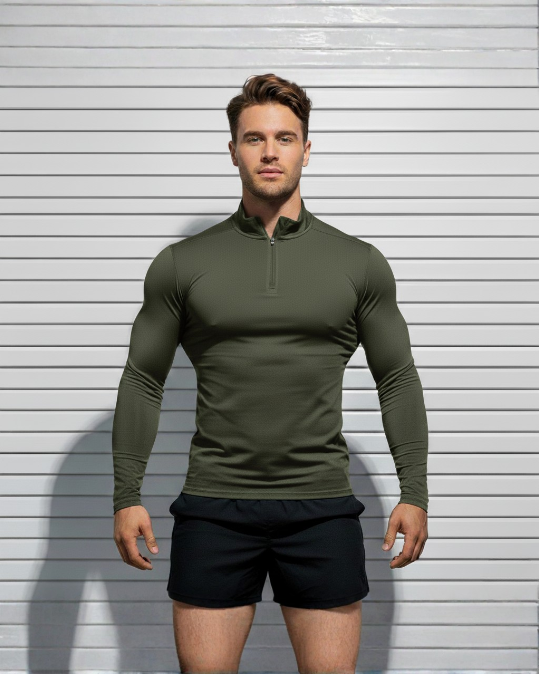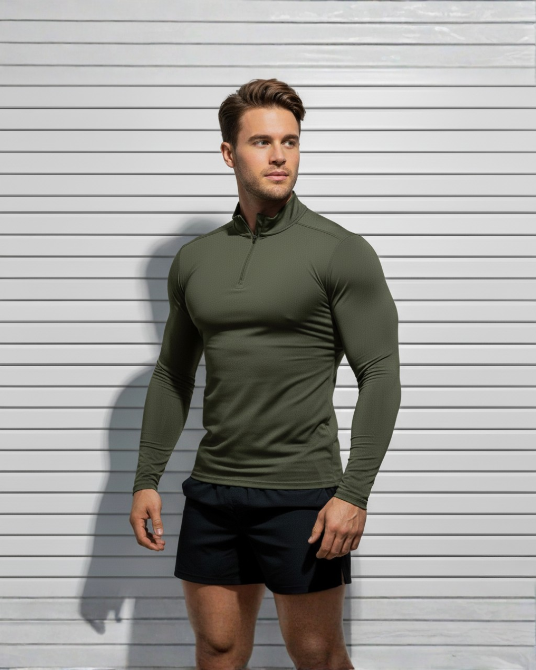 This quarter zip is sized to form to your body. The material is stretchy and breathable, yet extremely strong and durable. For a fitted look, size normally - Size up if you prefer more room.