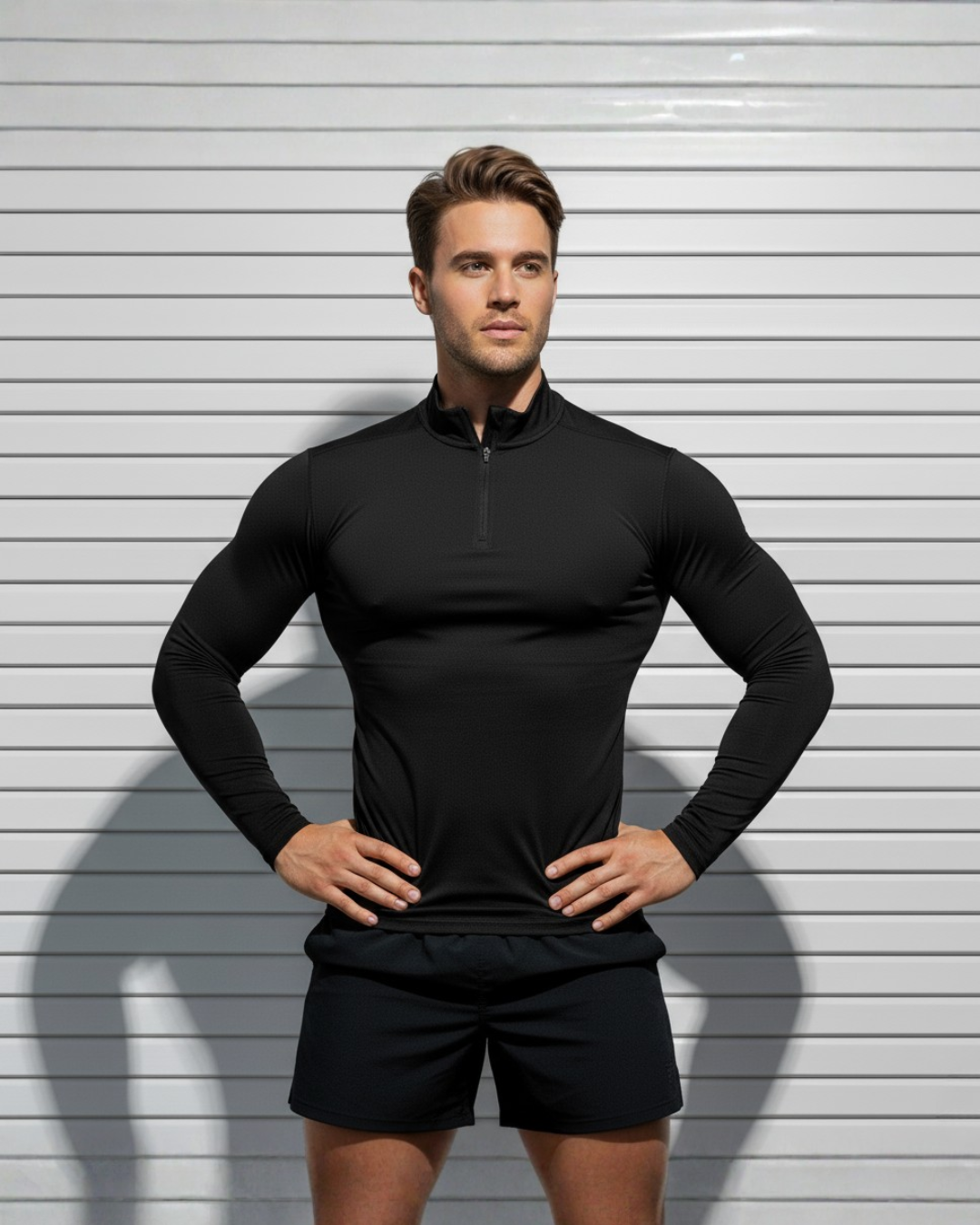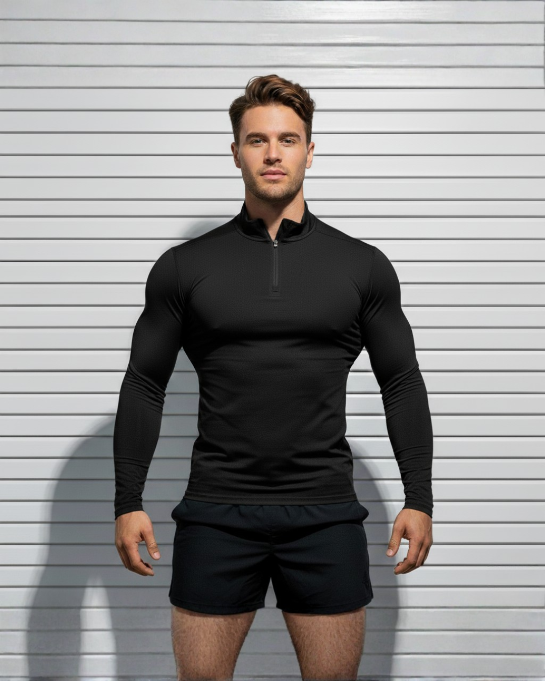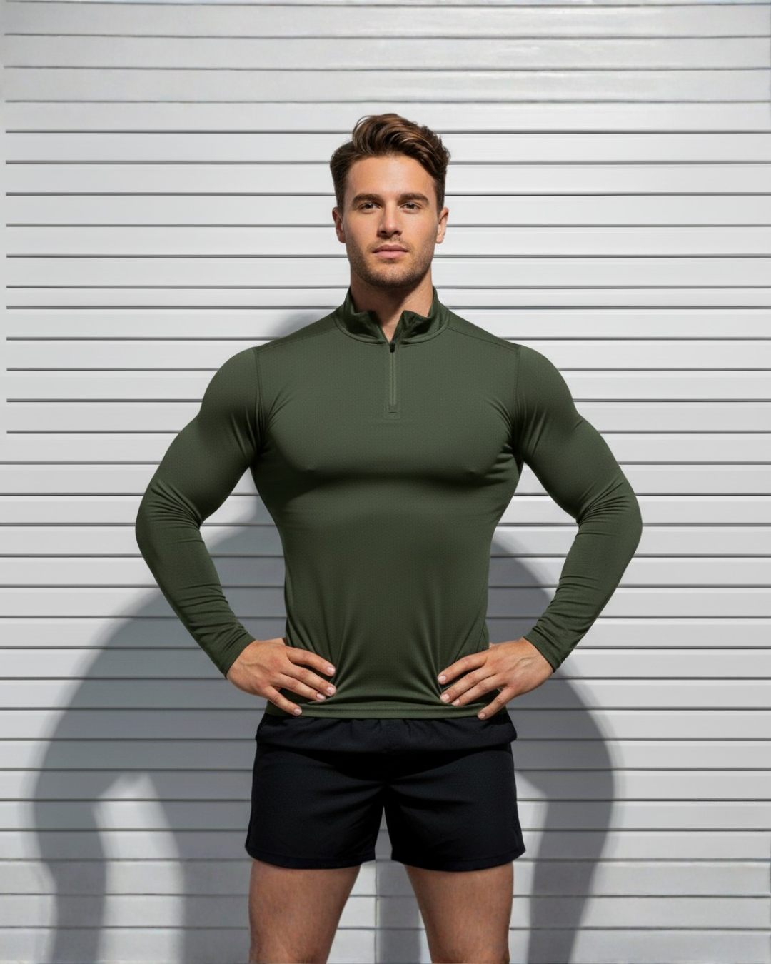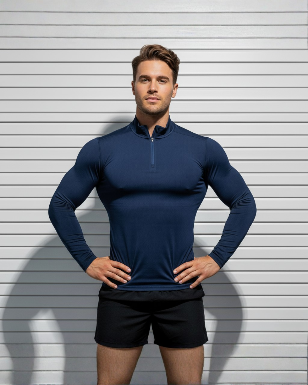 This quarter zip is sized to form to your body. The material is stretchy and breathable, yet extremely strong and durable. For a fitted look, size normally - Size up if you prefer more room.