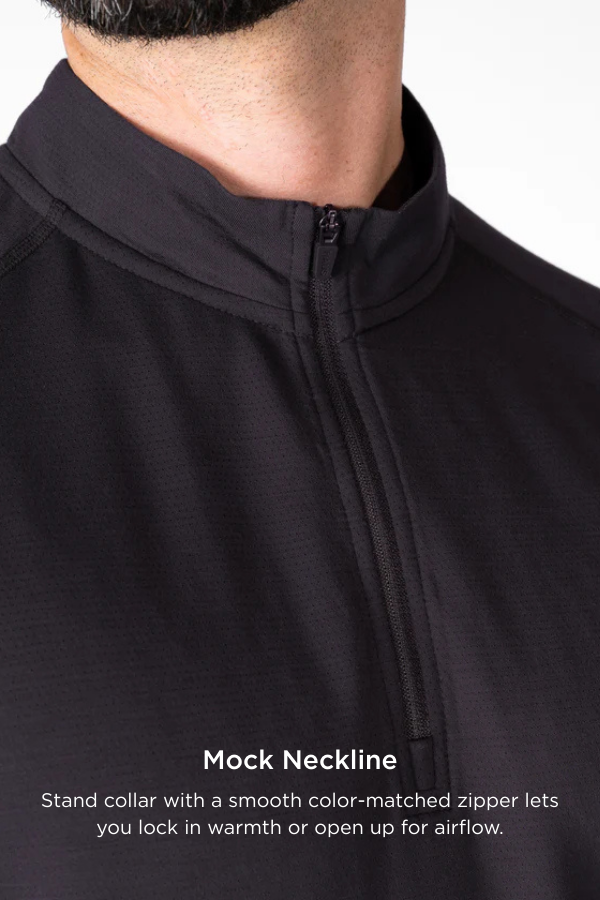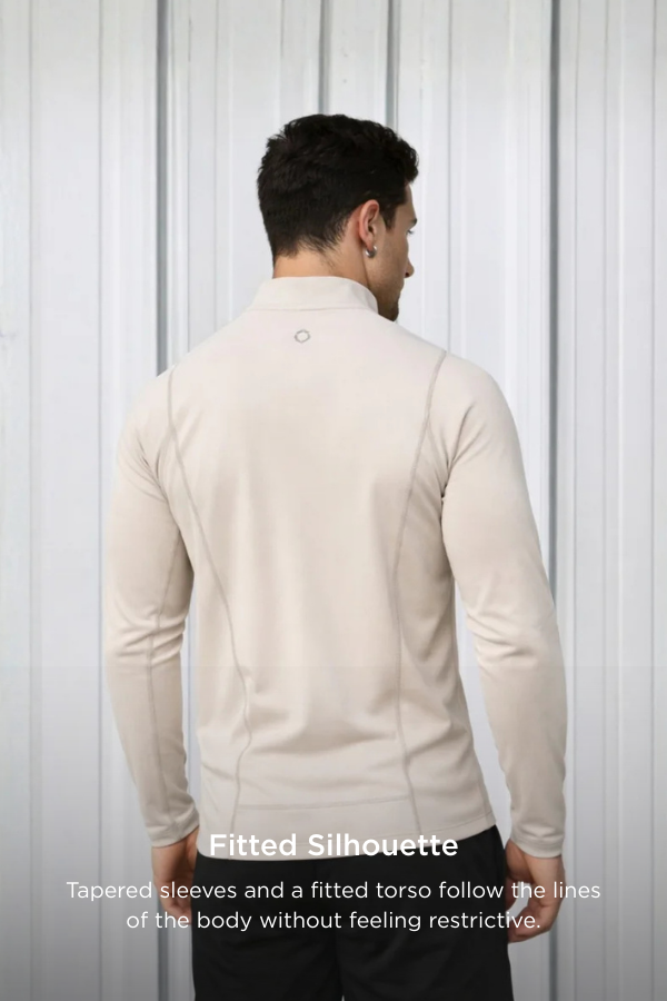 Style meets performance. Made from a stretch blend of 79% Nylon, 15% Lyocell, and 6% Spandex, this quarter zip is breathable, durable, and soft with a natural hand-feel. The athletic fit is tapered across the chest and shoulders, looser at the waist for a flattering shape. Perfect for moving from work to training without missing a beat. The only quarter zip that makes you look good. Anti-odor treatment keeps you feeling fresh no matter how hard you train.Model is 6'0 90kgs and wears a size large.