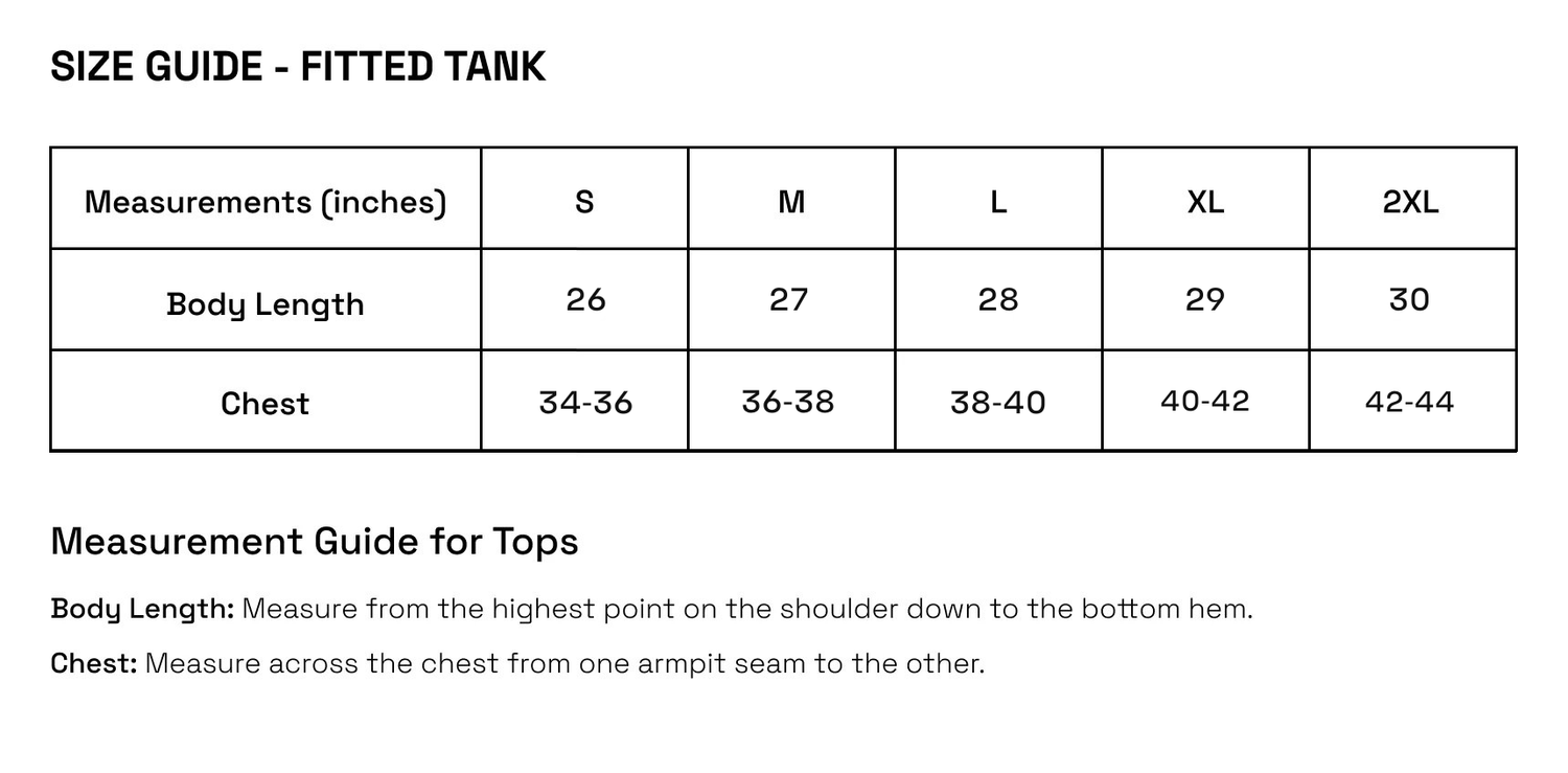 Tank forms to your body. Recommend sizing normally. For a looser look, size up.